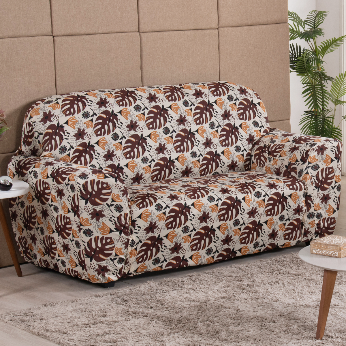 Capa para Sofá Coladinha com Elástico em Volta Folhas da Selva