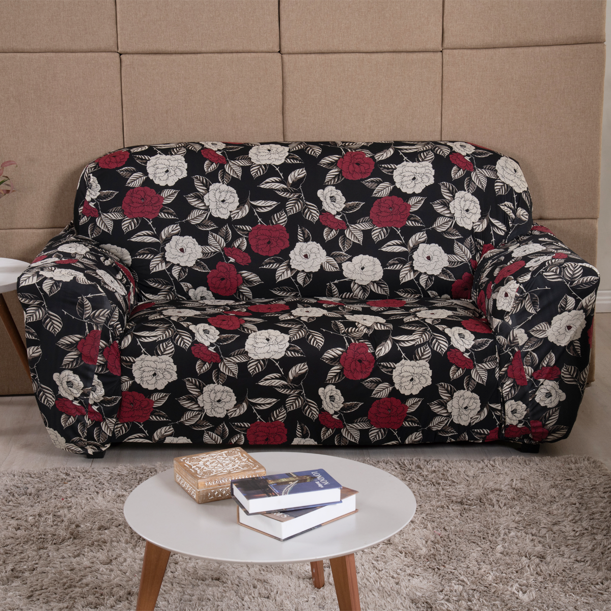 Capa para Sofá Coladinha com Elástico em Volta Rosas Noir
